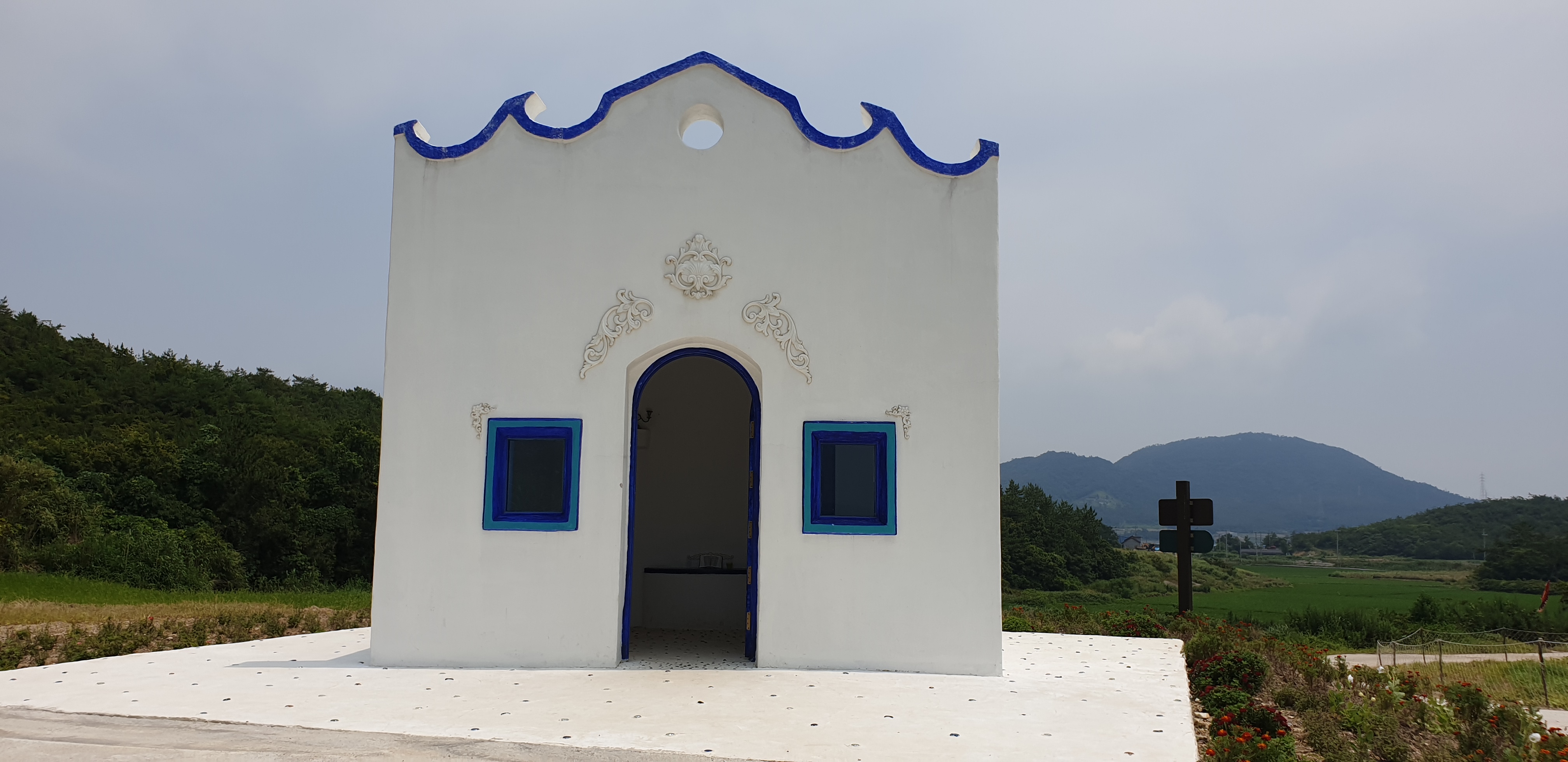 대기점항이 가까워지자 눈에 익은 파란 지붕에 하얀 회벽을 한 1번 기도의 집 베드로의 집이 보인다.